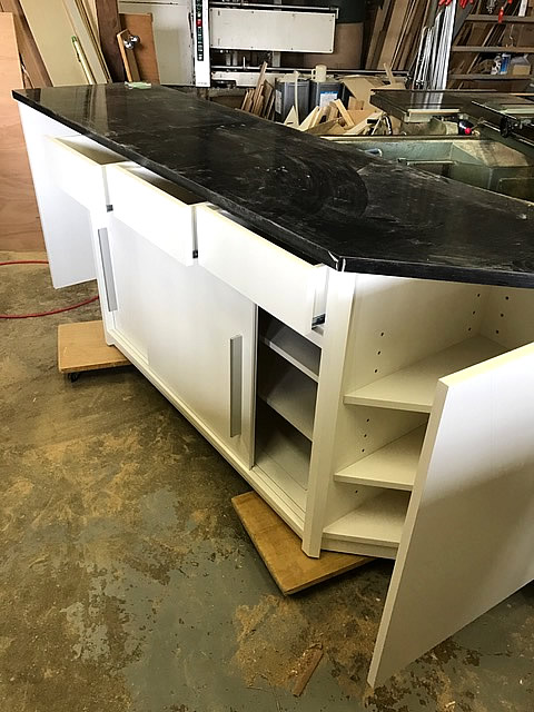 その割に、一般家庭の家具と比べて構造がややこしく、様々な形をして金物や電気系も融合しているため、大変手間、時間もかかり技術を要します。 逆に言うと百貨店で使われている家具什器には最新の金物やデザインが採用されているため、色々と勉強になることが多いにあります。